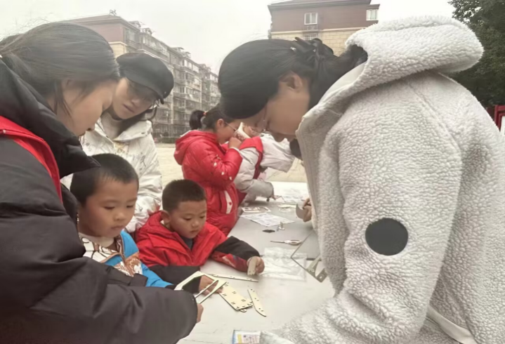 爱心手工共建课堂上,志愿者带领孩子们组装木质模型,过程中引导大家学习雷锋的合作精神与钻研态度。孩子们互帮互助,有的帮忙递零件,有的耐心教同伴拼接技巧,在共同完成作品的过程中,真切体会到“互助、友爱”的志愿精神,手工成品也成为孩子们传承雷锋精神的小小纪念。