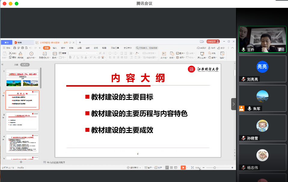 王乔教授从教材建设的主要目标、教材建设的主要历程与内容特色和教材建设的主要成效三个方向进行课程建设阐述。首先,教材建设的目标主要包括打造精品教材、申报教材奖项和支撑一流课程与一流专业建设。其次,2009年《中国税制》获批国家精品课程,2013年获批国家精品资源共享课程,2017年获批国家首批精品在线开放课程;该教材具有结构新颖、体系完整,理论与实践相结合、专业性与趣味性相统一,与时俱进、推陈出新、及时反映最新理论研究成果等特色。最后,目前《中国税制》教材被北京师范大学、山东大学、上海财经大学等全国二十多所高校选用;该教材获得“十二五”普通高等本科教育国家级规划教材、江西省“首届全国教材建设奖”推荐教材等荣誉;山东大学校长、教育部高等学校财政学类教指委主任樊丽明教授、中央财经大学副校长、中国财政学会副会长马海涛教授等对该教材给予很高的评价。