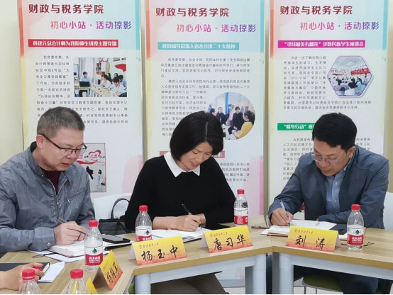 江苏省“我们身边的好青年”、江苏省优秀青年志愿者、江苏学生资助宣传大使税收2002班张颖同学分享了陶明坤同志几十年如一日坚守在打击税收违法犯罪最前线的故事,对工作和岗位保持高度热爱也是张颖同学希望自己作为一名学习税收学专业的青年学子能看齐的;在场的其他同学则分享了林玉登同志一点一点调整、打磨,跟模具“死磕”的故事,告诉财税学子应该学会在日新月异的社会中沉下心来。一个接一个精彩的“劳模故事”分享,现场气氛热烈。