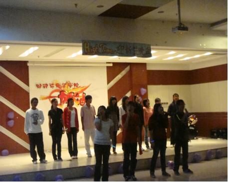 晚会吸引了大一、大二以及部分大三的同学的光临,现场气氛异常火暴。金属公社的《21 GUNS》点燃了在场所有人的热情,大二大三同学表演的舞蹈《GEE》让同学们心中的火焰又一次升高,接着话剧《秦始皇与无名》逗笑了全场,大一男生表演的《POKER FACE》让我们眼前为之一亮。歌伴舞《High歌》更是将此次晚会的主题“High Time”展现的淋漓尽致。