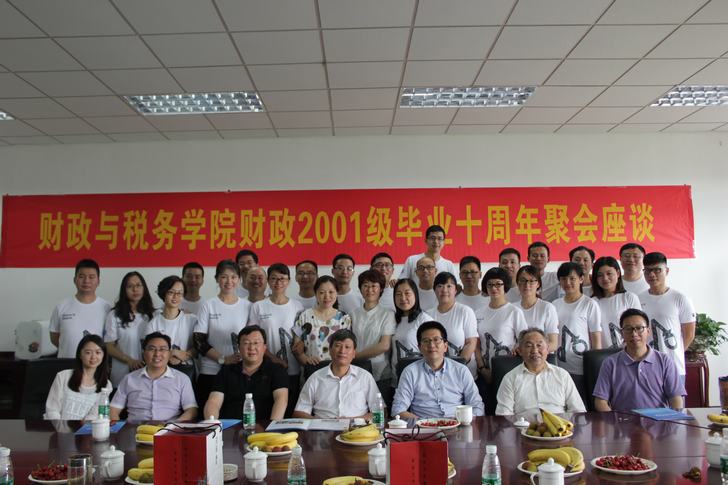 2015年6月6日,财政与税务学院2001级财政014班近30名毕业生为庆祝毕业10周年重返母校,欢聚一堂。