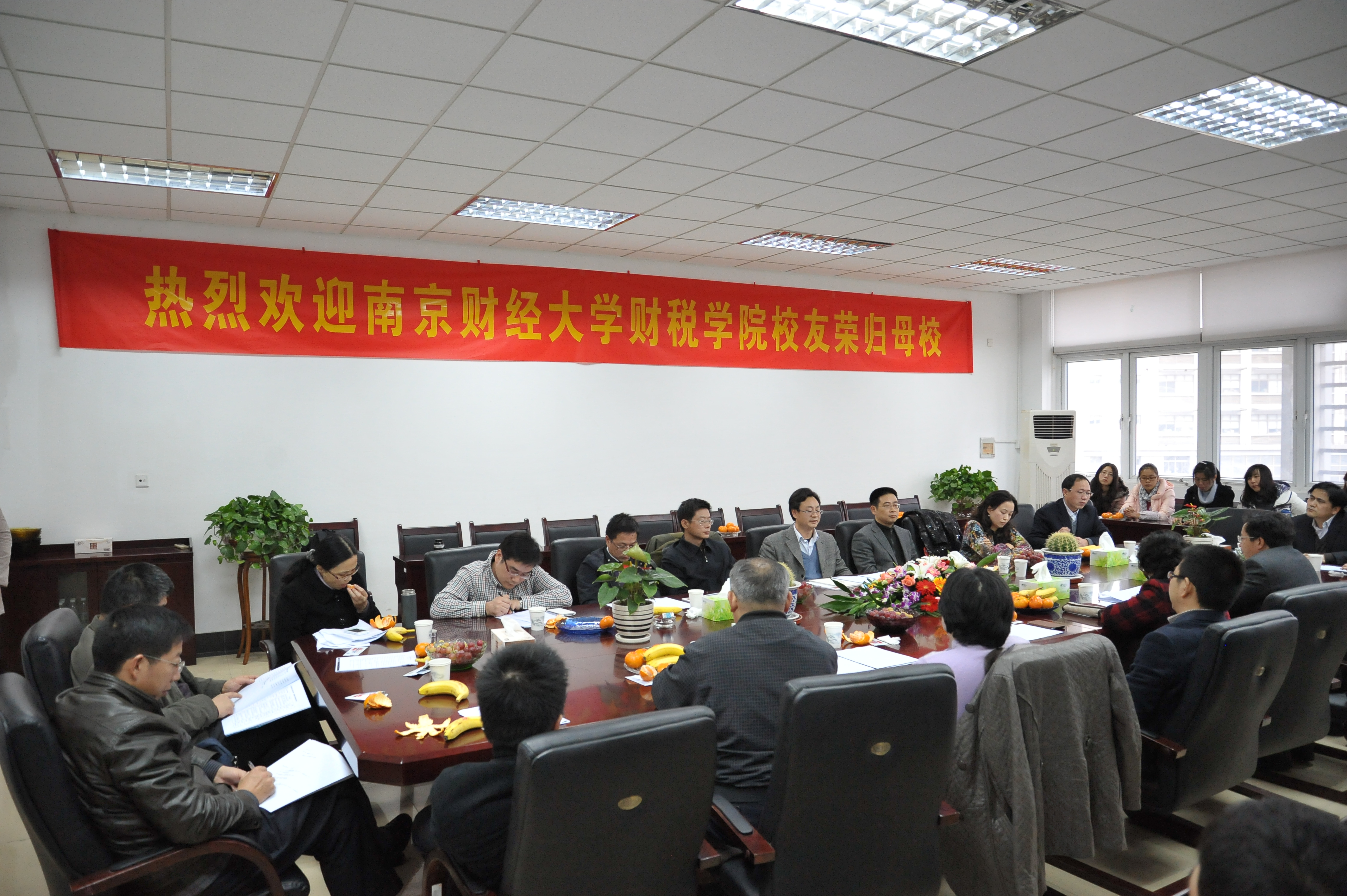 2012年12月1日下午,室外寒风瑟瑟,专一楼408会议室却暖意融融,我校财税学院校友座谈会在此召开。本次会议由学院党总支书记周晓飞同志主持,学院全体党政领导、部分教师代表、各年级学生代表、来自社会各界的数十位校友参加了座谈会。