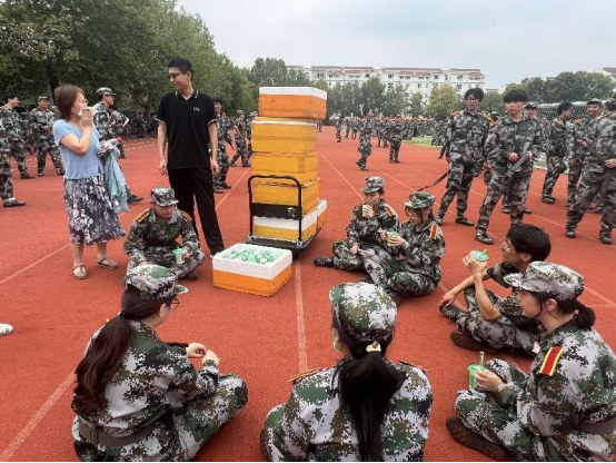 与此同时,南财大一新生和大二同学们正在烈日灼灼下进行军训学院老师们也来到军训现场为学生们送来了丝丝凉气的绿豆冰沙,在炎热的夏日驱赶着灼人的暑气,和同学们进行一场“双向奔赴”。操场中弥漫着绿豆清香,每一口都是满满的甜蜜和凉爽,仿佛能把所有的疲惫和炎热都一扫而空。在休息时间,同学们无拘无束的坐在草地中,享受着冰凉的绿豆沙,分享彼此的见闻,微风抚走脸上的汗珠,青春的笑颜比骄阳还耀眼。