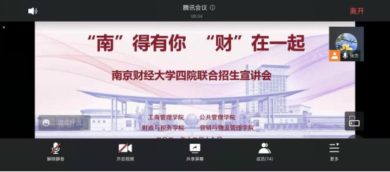 为帮助考生把握高考新政策、谋划成长新视界,搭建“权威、专业、及时”的交流平台,实现南财与高中的信息零距离沟通,帮助考生全面及时地了解招生政策和相关招生信息,尽早科学规划,拓展升学途径。12月19日下午到晚上,由我院、工商管理学院、营销与物流管理学院、公共管理学院联合举办的“南”得有你,“财”在一起线上招生宣讲会通过腾讯会议平台向公众开放直播。相关生源地高中学生及家长,部分报名参加寒假招生宣传母校行的志愿者参加了宣讲会,宣讲会由营销与物流管理学院党委副书记张杰主持。