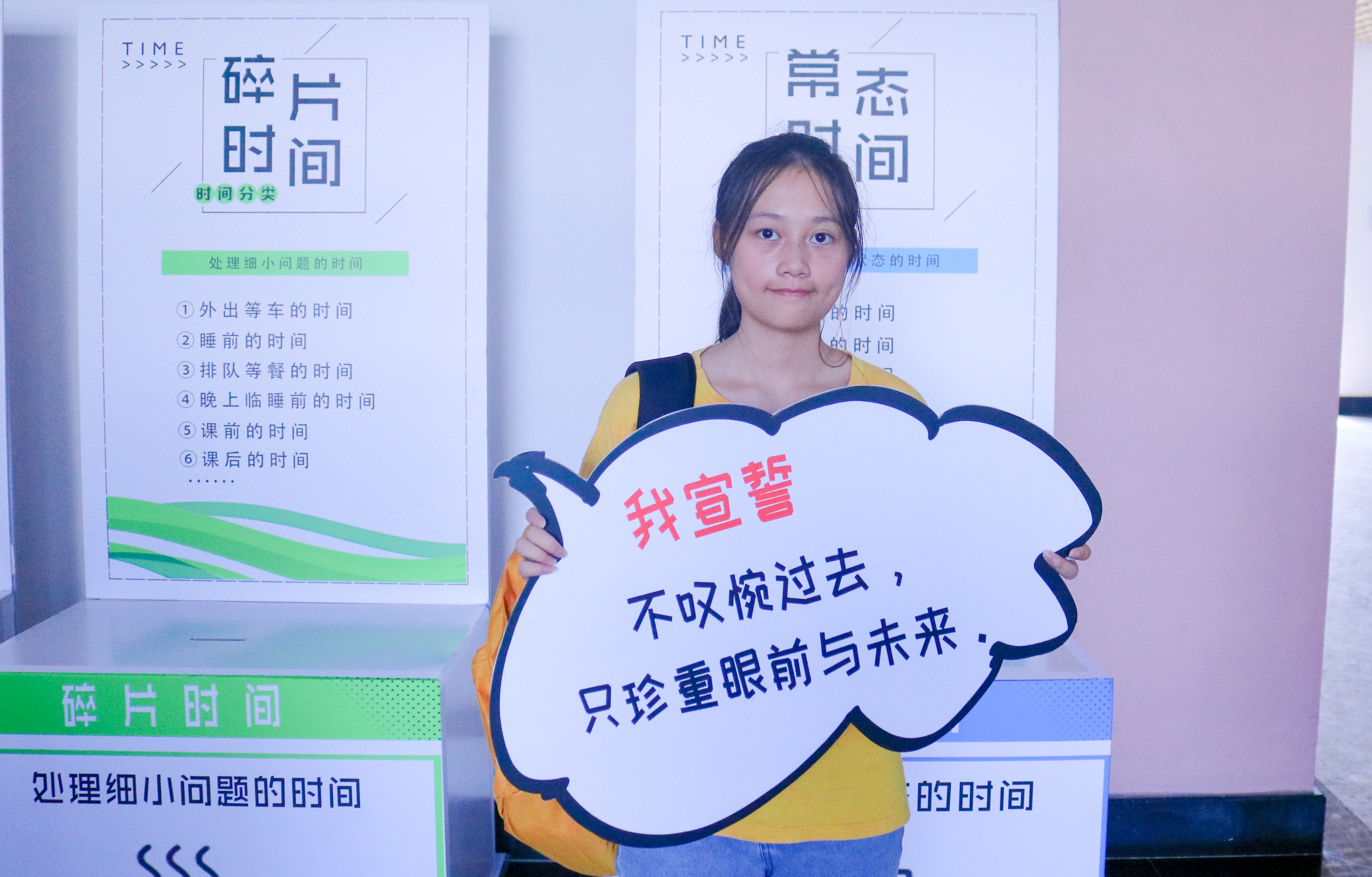 今年,我院以“时间规划”为主题,结合垃圾分类的时代热点,为新生上好入学第一课——如何高质量的规划大学的时间。“九百格人生管理术”开学第一课是想时刻提醒新生:进入大学时间规划变得尤为重要,只有正确规划时间,珍惜当下才能高质量的走完大学四年。配合今年的迎新主题,学院推出了时间规划分类盒子,把时间分为动态时间,黄金时间、碎片时间和常态时间。新生亲自将手中写有各类时间的小表盘投进四个盒子里,完成时间规划的初步分类。同时,新生还领到课后作业《拾光手账》,通过新颖的时间税,每天用应纳税额和实纳税额来评价每一天任务的完成度。用一种“纳税人”的身份,为自己的大学四年负责,做好规划。来自江苏连云港的新生同学解天宇说:“进入大学 ,这是我第一次以这种新颖的方式上课 ,我深感大学时间规划的重要性,相信自己会在今后的大学四年里珍惜时间,不负韶华。”