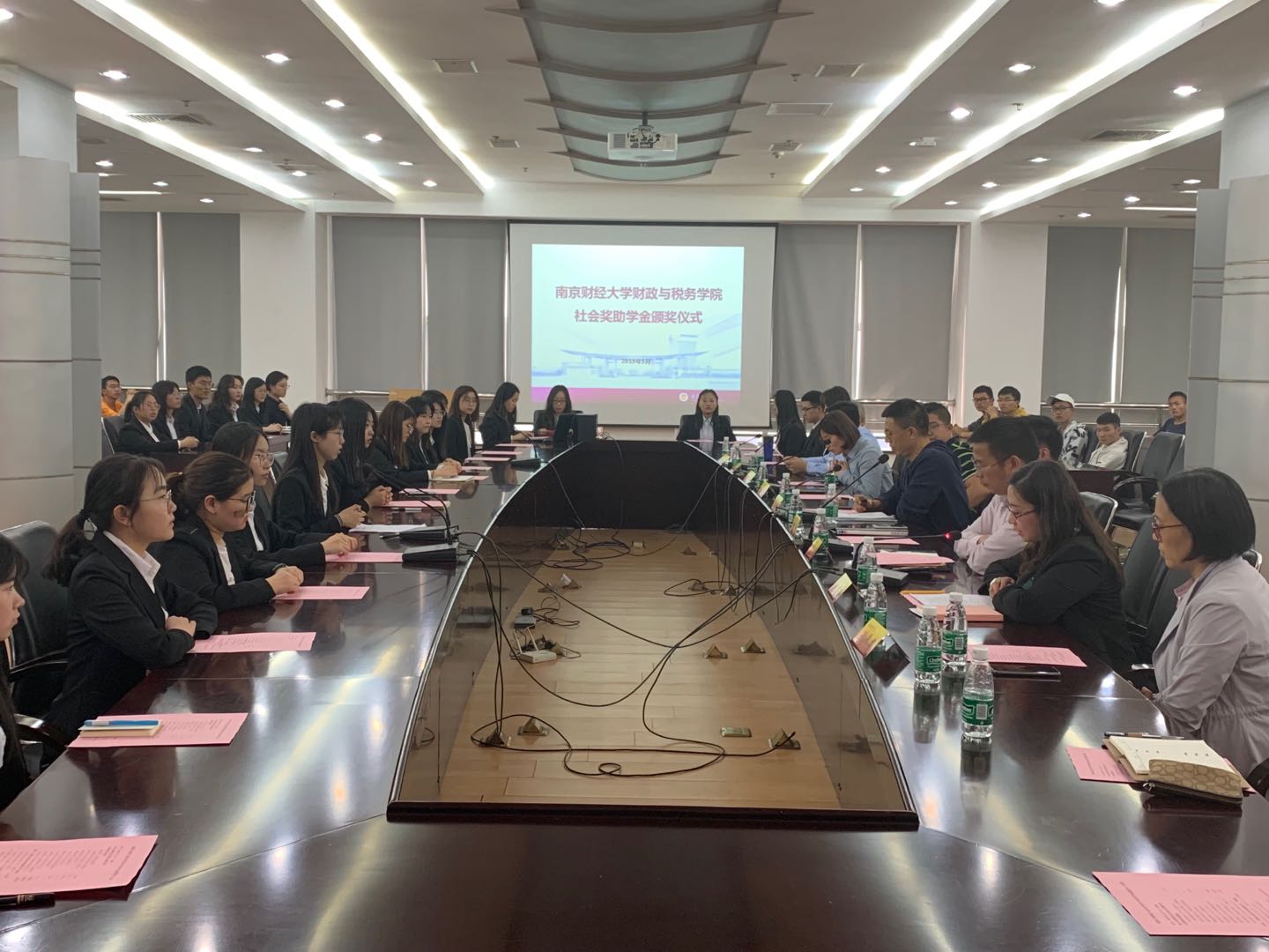 5月9日下午,“财政与税务学院2018年度社会捐赠奖助学金颁奖仪式”在行政楼16楼会议室举行。捐资方代表南京财经大学校友会副会长、上海润通实业投资有限公司董事长吴红斌、浏阳市地电电力服务公司董事长周龙、南财扬州校友会副会长洪声品、副秘书长陈蔚,以及我校审计处处长张金龙,对外联络处副处长王冲,财税学院副院长(主持工作)朱军,财税学院党委副书记李慕原,学院关工委副主任陆新葵,院实验室主任张秀莲等出席颁奖仪式。获得本次奖助学金的学生以及部分学生代表参加了仪式,仪式由财税学院党委副书记李慕原主持。