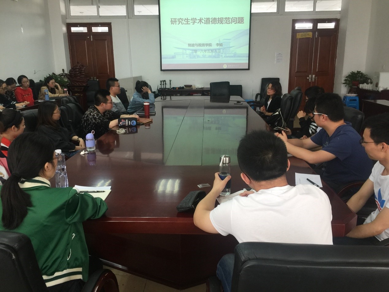 5月10日下午,我院“研究生科技文化月”首场活动在院408会议室举行,财政系主任李婧副教授和学院一、二年级的全体研究生就学术道德与学术规范问题进行了深入的交流与探讨。