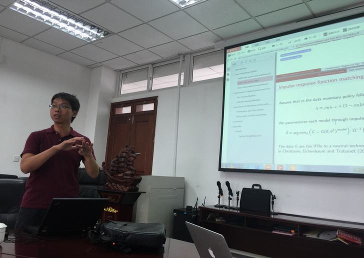 报告过程中,赵军柱博士从理论和实证的的角度向我们阐述了搜寻匹配模型(search and matching)和黏性工资模型(stick price model)对央行最优货币政策制定的区别性影响。该项研究通过构建与模型相匹配的中央银行损失函数,选取与理论模型相吻合的实证数据,采用Matlab软件和Dynare软件包进行模拟得到相应的结果。根据模拟结果:赵军柱博士认为,粘性工资模型下导致的社会福利损失远大于搜寻匹配模型,因此央行应更注重考虑调整黏性工资的稳健货币政策以达到福利最大化。
