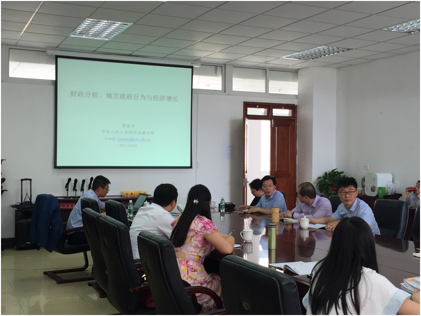 日下午,应我校财政与税务学院邀请,中国人民大学财政金融学院贾俊雪教授为财税学院部分教师和研究生作了题为“中国财政分权理论:框架体系与政策启示”专题讲座。讲座由财政与税务学院院长李林木教授主持。