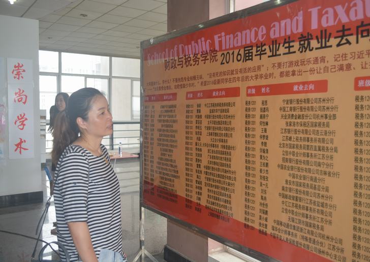 学院在新生报到处分别展示了财政与税务学院“2016届毕业生升学出国表彰榜”和“2016届毕业生就业去向汇总榜”,引导学生逐步树立努力目标与方向。同时,向新生及家长介绍了学院设立的“精英培育人才”奖学金、“读史研税 济困助学基金”、“卓成规划设计助学金”、“京洲联信助学金”等四项奖助学金,鼓励品学兼优、积极向上、志向远大的学生,展示学院对优秀学生尤其是家庭经济困难生提供重点帮助与支持。