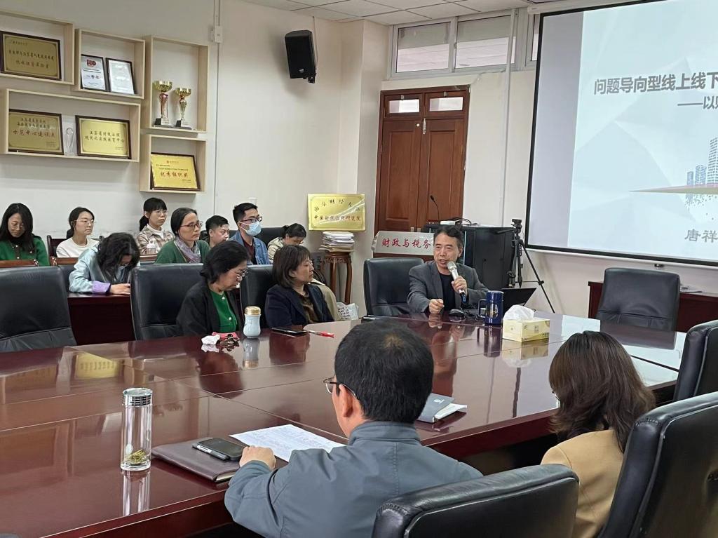 2024年4月17日下午,按照学校“名师名课示范观摩”活动的部署,学院邀请了校级教学名师唐祥来教授为全院专职教师做题为“问题导向型线上线下混合教学改革实践——以财政学为例”的教学经验分享。参与此次教研活动有财政与税务学院党委书记陈苏、院长杨继军、副院长田志刚以及学院全体教师,活动由财政与税务学院院长助理张海峰主持。