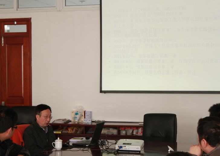 2014年12月17日下午,我院“学术沙龙”邀请到上海财经大学中国公共财政研究院执行院长、公共经济与管理学院副院长、博士生导师刘小川教授为我院师生作了题为“新《预算法》解读”的学术专题讲座。讲座由财政与税务学院副院长、公共财政研究中心主任黄斌教授主持,我院部分教师及研究生参加了本次讲座。