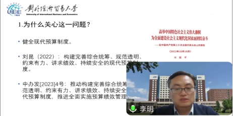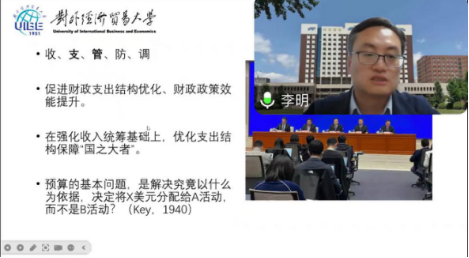 2024416日,我院邀请对外经贸大学李明教授为师生做了题为“中国财政预算资源配置的事实与逻辑”的线上学术报告会,会议由财政与税务学院院长杨继军主持,我院部分教师及研究生参与了此次讲座。