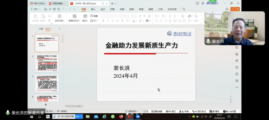 为深入学习贯彻全国两会精神,特别是习近平总书记关于发展新质生产力的重要论述,2024418日,我院特邀中国社会科学院经济研究所研究员、中国社会科学院大学裴长洪教授为师生做题为《金融助力发展新质生产力》的线上学术讲座,会议由财政与税务学院院长杨继军主持,我院教师及研究生参与此次讲座。