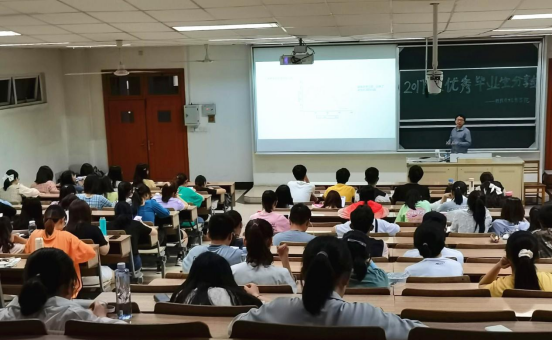 叶兵老师介绍了学院2017级毕业生毕业去向,对当下的考研形式做出分析,并希望大家对自己准确定位,尽早确定目标,付出实际行动。被中南财经政法大学录取的朱慧同学、与南财再续前缘的瞿玲玲同学、赵佳怡同学分别从选专业和选学校、考研信息搜集备考内容三个方面来讲述经验。她们认为,考研的成功等于正确的方法、不懈的努力、良好的心态以及恰当的复习材料并且建议大家也要树立正确的得失观平常要有正常的作息,学会调整自己的心态将赴英国留学的顾晗同学制定适合自己的目标和计划分享经验,介绍了她从准备申请到面试等出国留学的全过程,为有出国意向的同学提供了一些借鉴最后,选择考公的陶幸园同学,讲述了她自己如何准备笔试、面试,最后成功进入常州税务局的经历,解决了大家对于考公方面的一些疑问。除了收获丰富、实用的分享经验外,在场同学还进一步与分享者进行了交流,询问更多与未来学习、就业等方面的细节问题。师生们风趣的语言、门见山的讲述风格、清晰条理,获得现场一致好评。