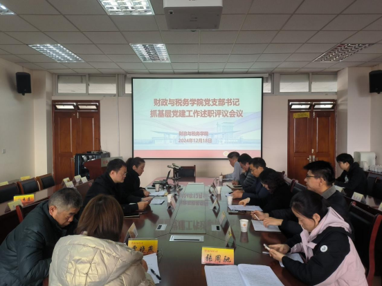 我院财政系党支部、税务系党支部、行政党支部、本科生第一党支部、本科生第二党支部、研究生党支部6个基层党支部书记参与述职评议,参评党支部书记对照述职评议考核主要内容,全面总结2024年抓党建工作情况,以履行职责情况为主,实事求是总结支部工作的成绩和经验、分析存在问题及原因、提出下一步工作思路和打算。