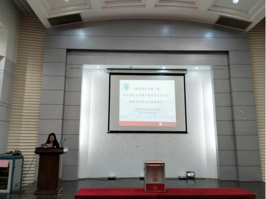 院学生会轮值主席曾丽娟同学发言,她向在场同学介绍了第六次学代会的前期筹备内容、学生代表的职责及我院学生会对此次学代会的推进情况。随后,由各班级推选的15名学生代表依次上台演讲,他们落落大方、充满自信,表达了自己渴望成为学生代表的激情和决心。随后学生代表依次投票,最终产生12名候选代表,他们将代表我院参与南京财经大学第六次学生代表大会。