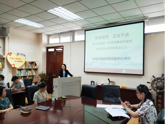 630日下午,我院党委书记陈苏在仙林校区德经楼408“支部之家”讲授“艰难困苦 玉汝于成 学习党的第一代领导集体形成史 提高政治自觉和政治三力”党史学习教育主题党课。我院各教师党支部、全体教职工和学生代表参加党课学习。