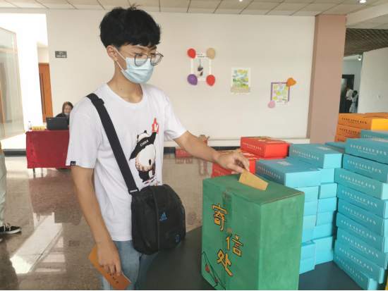 在迎新现场,每个新生在办理完报到手续后,都从包里取出了一封写给自己的信,郑重地投到“时光邮筒”里。你对即将开启的这段青春有怎样的期待?你对未来的自己有什么嘱托?这是学院暑假里就布置给新生的作业,新生们提前写好给大学四年后毕业的自己的一封信,报到时亲自将信件投入精心设计的“时光邮筒”之中,为自己的大学四年负责,做好规划。两百多封信件将由财政与税务学院代为保存,静候四年后的开启。