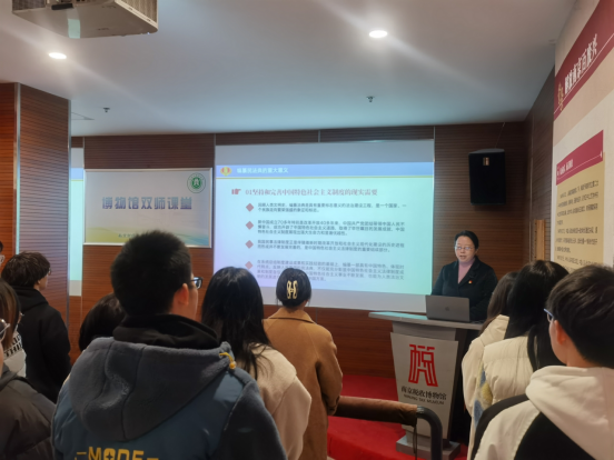 本次“双师课堂”基于我院开设的“中国税制”专业课,恰逢国家宪法日,主要分为《民法典与税收法治关系的理论阐释》和《民法典与税收法治实践(实务操作)》两个部分,由财政与税务学院和国家税务总局南京市税务局第三稽查局联合讲授,课程教学对象是我税收学专业大二年级的大学生普法志愿者。