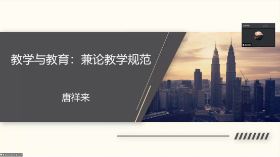 2021年8月26日,我校本科教学督导专家、南京财经大学财政与税务学院唐祥来教授为财政与税务学院教师作题为“教学与教育:兼论教学规范”的线上专场培训。培训由财政与税务学院副院长田志刚副教授主持,学院全体教师参加了此次培训。