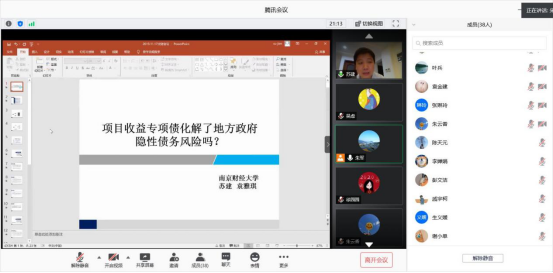 6月4日下午,经济学博士、南京财经大学财政与税务学院副教授苏建老师通过腾讯会议为学院师生作了主题为“项目收益专项债化解了地方政府隐形债务风险吗” 的线上学术报告。学院部分教师和19级税务专硕研究生参加了本次学术报告。