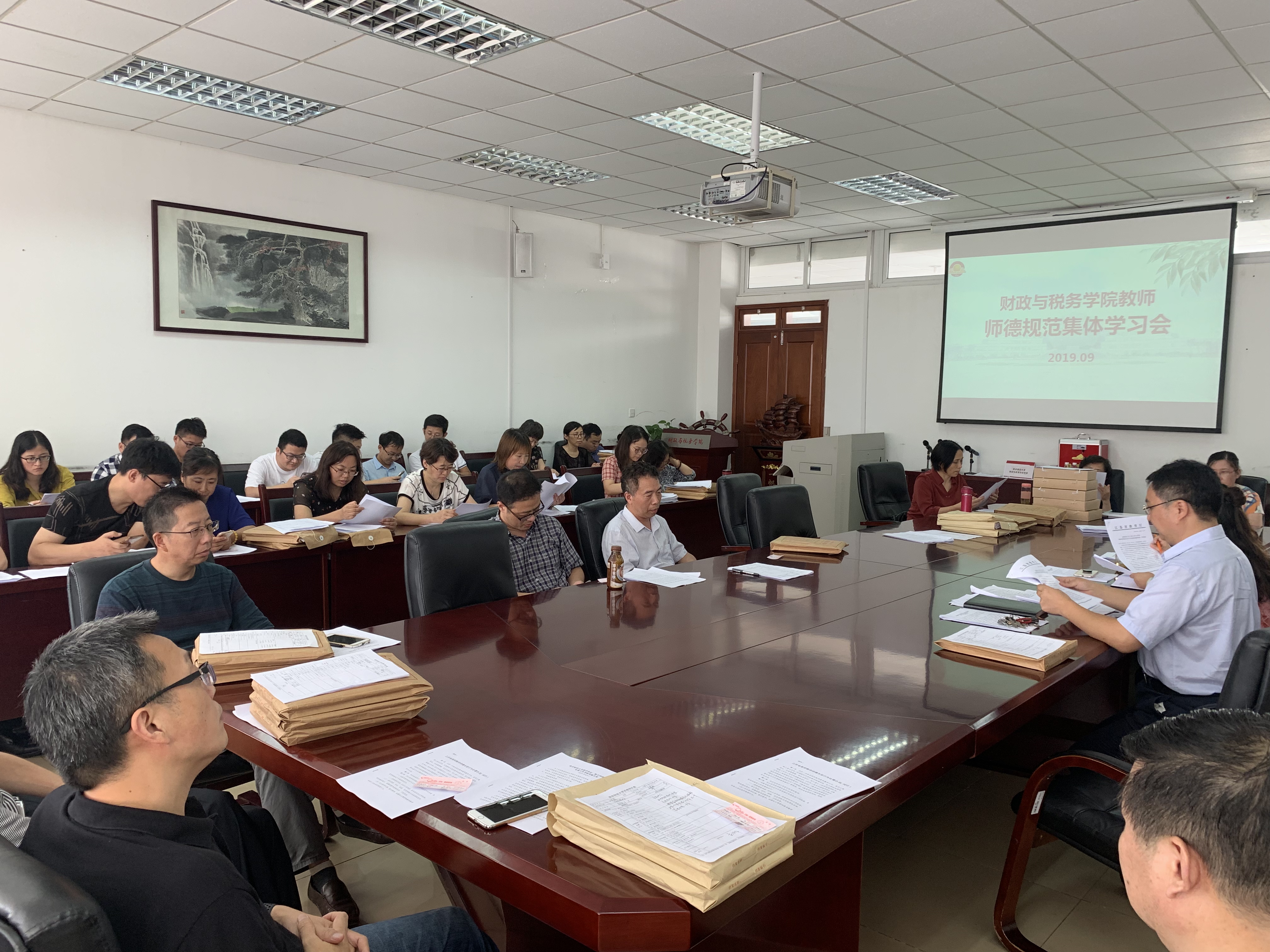 9月11日,我院组织召开财政与税务学院师德规范集体学习会,会议由院党委副书记李慕原主持,学院全体教职工参加。