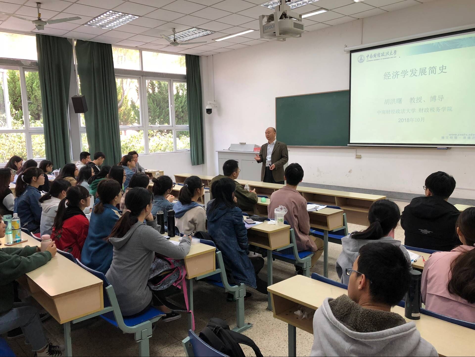 讲座过程中,胡洪曙教授在讲述经济学发展史的同时,还结合自身经历与体会,诙谐风趣地描述了诸多貌似简单而又意义深刻的经济学原理,讲座现场气氛活跃。胡教授告诫同学们:在校期间要勤于读书,多思考生活中的问题,要保持足够的求知欲,不断充实自己,努力提升自己的社会价值。