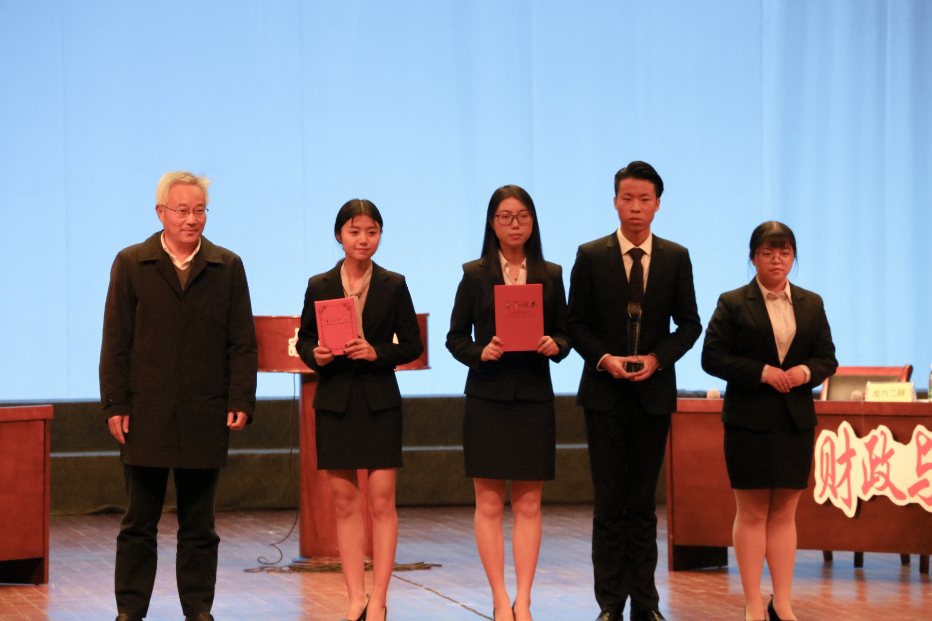 最后,通过评委投票,获胜方是正方国际经贸学院,反方财政与税务学院获得亚军,获得最佳风度的是财政与税务学院三辩任畅同学,国际经贸学院二辩张博琳获得最佳辩手。本届校辩赛还创新推出辩手积分榜,评选出7位优秀辩手,分别为食品科学与工程学院刘禹、财政与税务学院申珅、金融学院刘澳、经济学院朱睿、国际经贸学院张博琳、国际经贸学院岑鹭雅、管理科学与工程学院陶云杰。相关领导为获奖选手及获奖代表队颁奖并且集体合影留念。