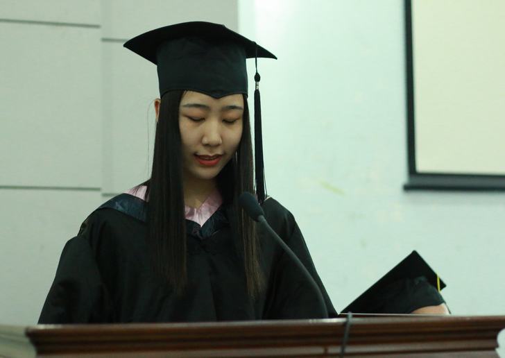 图5:考取中央财经大学研究生的毕业生代表朱玉洁同学发言