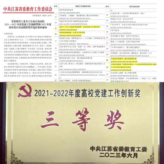 近日,中共江苏省委教育工委公布了2021—2022年度高校“党建工作创新奖”优胜奖评选结果(苏委教组函〔2023〕24号),财政与税务学院党委的“双师双创强基能,红蓝文化育先锋”获“党建工作创新奖”三等奖。