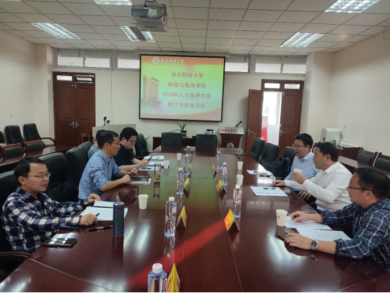 10月19日,我院2024年新一轮人才培养方案修订校外专家指导会在仙林校区德经楼408会议室举行。本次会议邀请财政学类专业教指委委员,浙江大学经济学院副院长方红生教授、财政学类专业教指委委员,世界卫生组织烟草控制与经济政策合作中心主任,对外经济贸易大学国际经济贸易学院郑榕教授、南京大学教学委员会副主任,南京大学商学院党委书记张二震教授、南京林业大学经济管理学院院长杨红强教授、南京邮电大学经济学院院长岳中刚教授、南京审计大学经济学院院长樊士德教授六位专家进行指导,会议由我院院长杨继军教授主持,其他参会人员包括:院长助理张海峰、财政系主任叶兵、税务系主任刘亮亮。